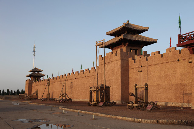 城门外陈列着战争工具。