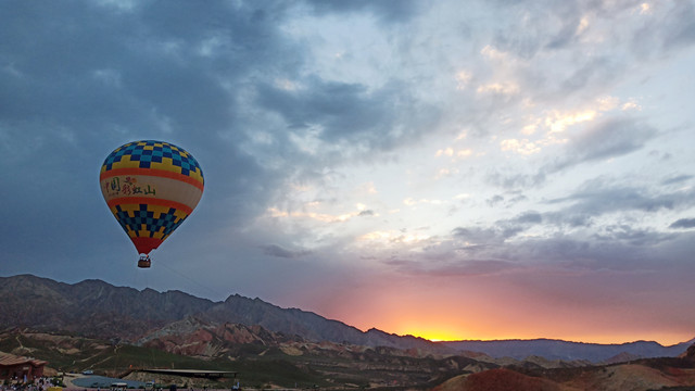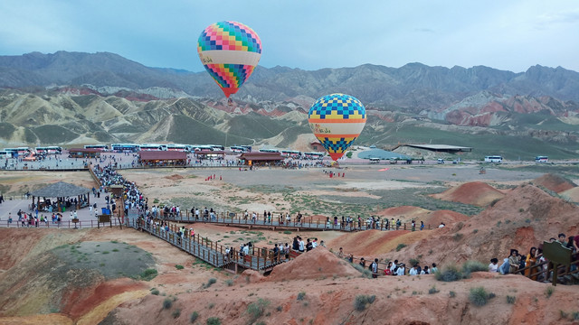 搭乘热气球俯瞰丹霞地貌