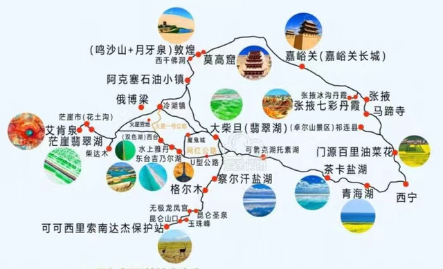 1.青海段:西宁—青海湖—茶卡盐湖—大柴旦(翡翠湖)—察尔汗盐湖—水上雅丹—南八仙—大柴旦—石油小镇