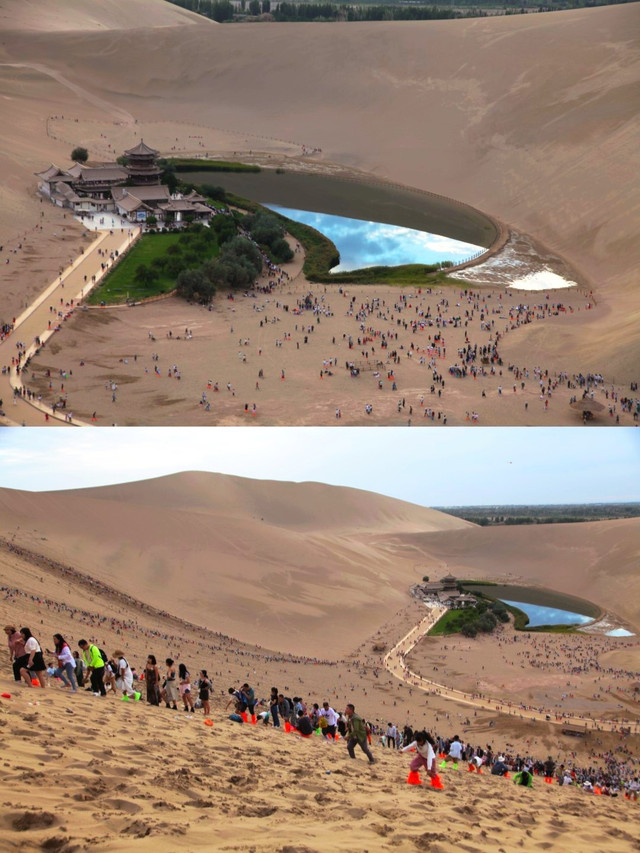 D8(8/17)上午敦煌博物馆,人满为患,下午雷音寺清净的很,偶遇和尚上课,尽管不懂但还是静静的听完,没有商业化。晚上去了鸣沙山月牙泉,门票性价比很差,管理乱,景色一般。