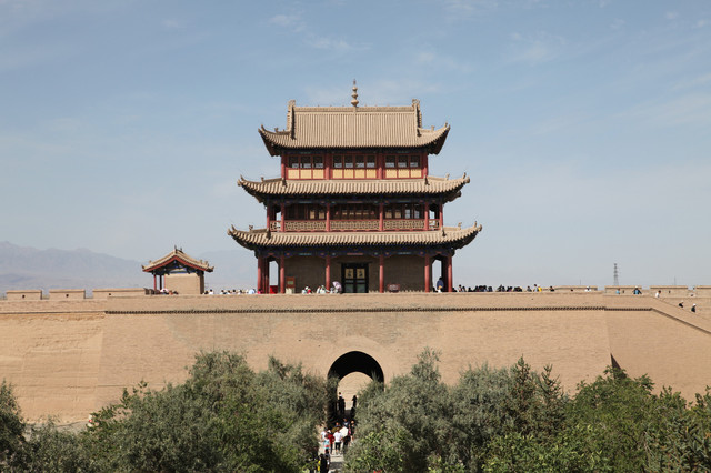 嘉峪关,号称“天下第一雄关”,位于甘肃省嘉峪关市西5公里处最狭窄的山谷中部,城关两侧的城墙横穿沙漠戈壁,北连黑山悬壁长城,南接天下第一墩,是明长城最西端的关口,历史上曾被称为河西咽喉,气势雄伟壮观。