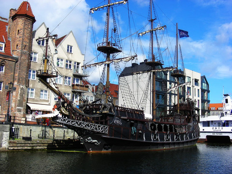 今天我们漫步在市中心老城区,保存完好的古旧民房看上去象阿姆斯特丹,那种窄窄高高的门脸儿,教堂和广场看上去象北德的城市。最早格但斯克是波美拉尼亚公爵领地的首都,并不属于德意志,是波兰国王的臣属。它东边的普鲁士,当时是无主之地,不在德意志神圣罗马帝国范畴之内,甚至不信仰基督教。后来到了13世纪,原本在以色列巴勒斯坦圣地的条顿骑士团得到神圣罗马帝国皇帝和教皇的准许,逐渐从圣地转移到这里,任务是征服普鲁士,以及波罗的海沿岸这些不信基督教的原住民。条顿骑士团的骑士们虽然来自德意志,但是骑士团本身直属于教皇,不是德意志诸邦的一部分。骑士团征服荒地,让波罗的海民族皈依基督教的任务完成得很出色,德国以东的这片地区直到今天的波罗的海三国,就成了独立的骑士团国家。格但斯克在骑士团国家中。可是沿海的骑士团国家把南边波兰王国的出海口全部堵死了,于是骑士团和波兰开战,后来败给波兰。格但斯克所在的西半部普鲁士割让给了波兰国王。于是格但斯克从此属于波兰。