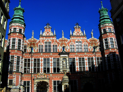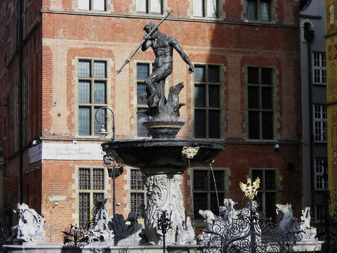 今天格但斯克老城里那些特别美丽的文艺复兴式建筑,大多数都来自这个近代的黄金时期。比如从火车站走向旧城区途中所见到的几座教堂、城门塔楼和旧市场,都是红砖建造的北德哥特风格。波罗的海沿岸森林沼泽遍布,地势低平,不出产石料,所以这一带各国大多数教堂、城堡、城墙、市政厅等大型建筑都用红砖制造。据说格但斯克的圣母大教堂是全世界最大的砖结构教堂,不过笔者到过的法国南部城市阿尔比,也有一座号称全世界最大的砖结构教堂,不知道它们相比哪个更大。
