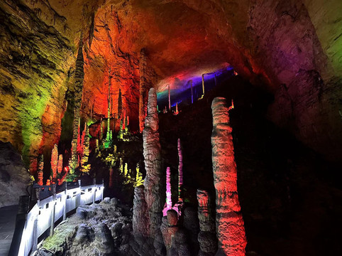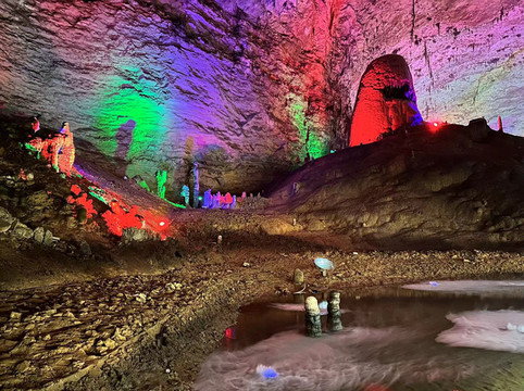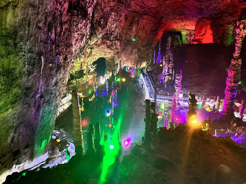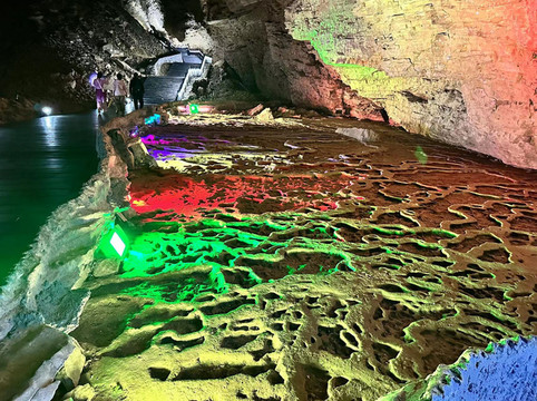 每队一个景区讲解员带领游玩黄龙洞,体验感还是非常不错的,黄龙洞内跟着讲解员听一听讲解也可以更好的学习到一些知识。洞内需要先游览一小段而后就是乘船,