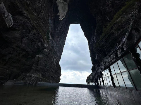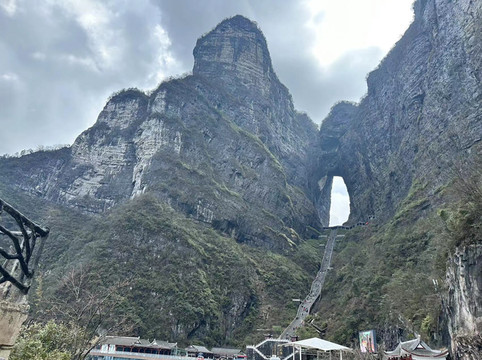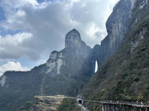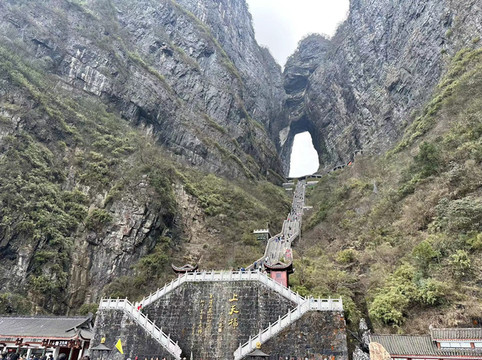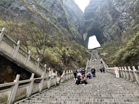 情人桥出来后即到达七节免费的穿山扶梯,坐扶梯下来即可到达天门洞内,然后可以选择走999台阶下至天门洞广场,或者购买32元的5节穿山扶梯票下至天门洞广场。