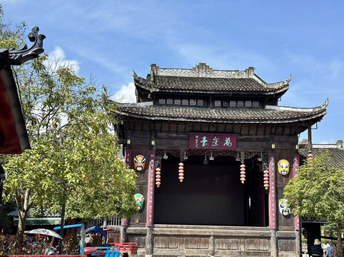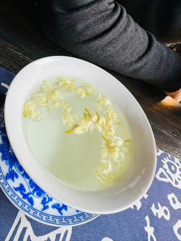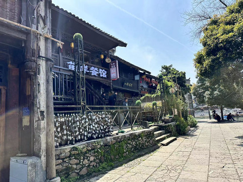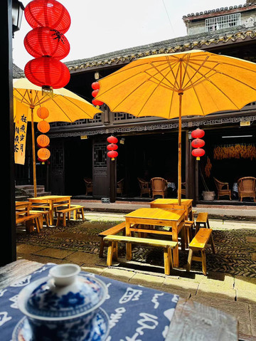 拍完照回客栈简单休息一下,一点半左右出发去河对面的杨家祠堂喝茶,因为淡季所以喝茶的人不是很多,我们一家三口独享美景,一碗红茶,一碗绿茶,一碗花茶,闲适的午后喝茶赏景,怎能不叫惬意呢。
