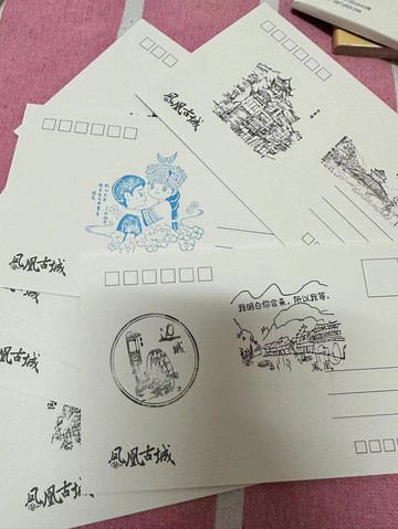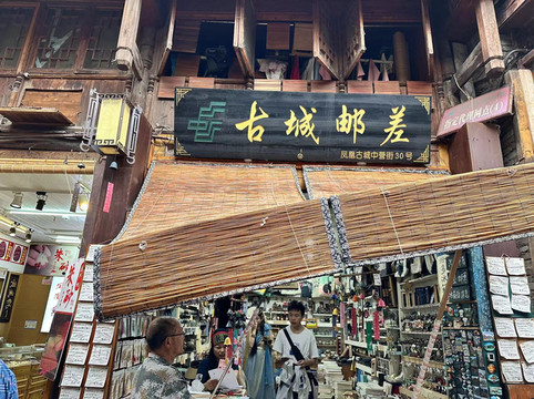 中途还逛了沈从文故居附近的古城邮差,买到了冰箱贴、明信片、书签,还有为你写字的老板哦,老板的字相当好👍