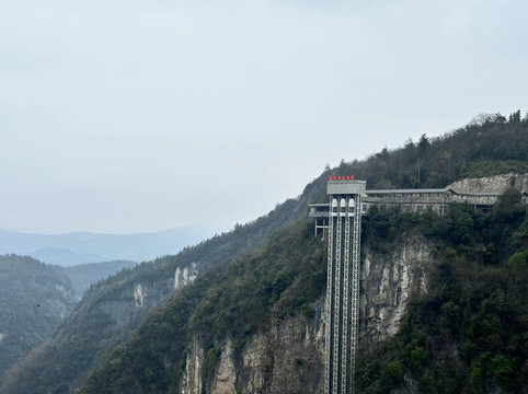 走一圈出去乘坐环保车到达百龙天梯,大约排队排了半小时坐上百龙天梯下山,