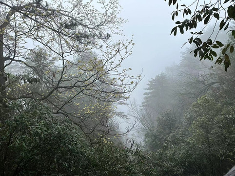 可惜这次好运没有跟随我们哦,山顶大雾,能见度很低,真是应了那句,张家界顶有神仙啊~但是我们依旧抱着侥幸的心里想着是不是一会儿雾能散开,可惜环寨一圈雾都没有散,下次有机会再来吧,