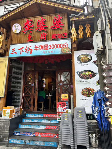 我们天门山全程游览时长约六个小时,由于老爸老妈有一些累了而且也一直没吃午饭所以直接打车到了龚婆婆土厨吃午餐,10元一人价格也还可以,龚婆婆土厨的三下锅、外婆擦炒蛋、素炒油麦菜和酸萝卜超级好吃哦,但是老妈最爱的是龚婆婆家的茶水哈哈,而且米饭不限量,对于胃口大的友友超级友好哦。