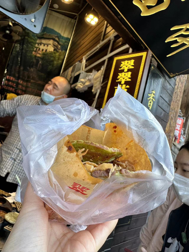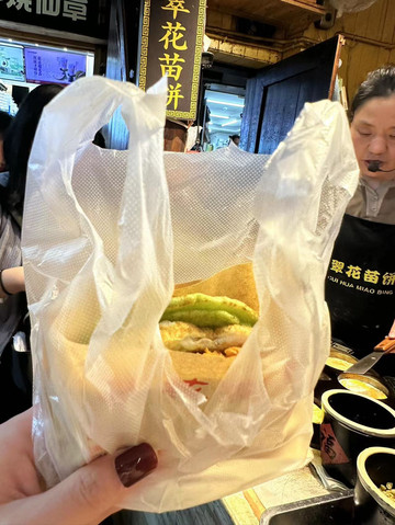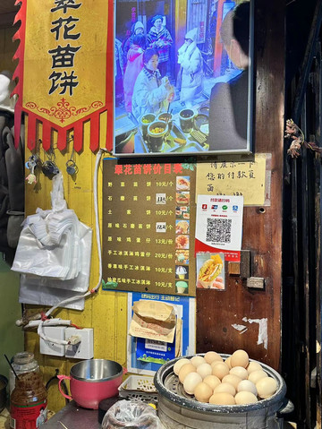 老爸老妈在虹桥稍作等待,自己先去翠翠苗饼买了网红的翠翠野菜苗饼、石磨野菜苗饼和苗家相思饼,