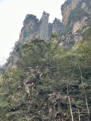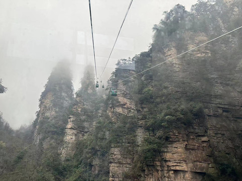 由于民宿老板帮定的是森林公园门票加三索一梯无限次乘坐,所以看到冷门的杨家界索道没有人,为了值回票价,做了杨家界索道下山,拍了两张照片又坐了杨家界索道上山回来嘿嘿,