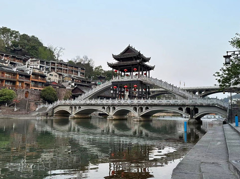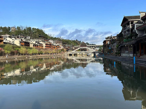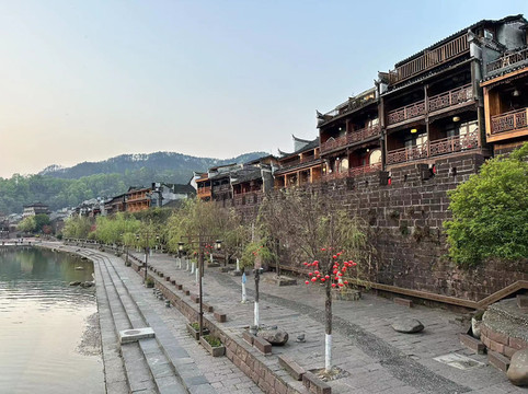 由于定了八点四十的第一趟凤凰古城回长沙的高铁,所以今天五点多早早的就起床了,收拾利索买了几个茶鸡蛋带上当早餐,最后再欣赏一下凤凰的清晨。