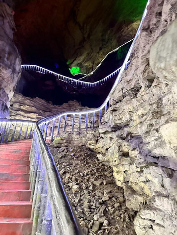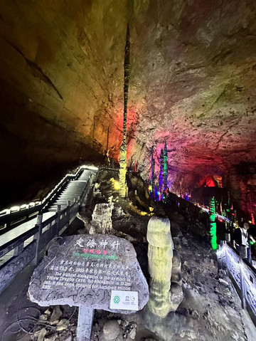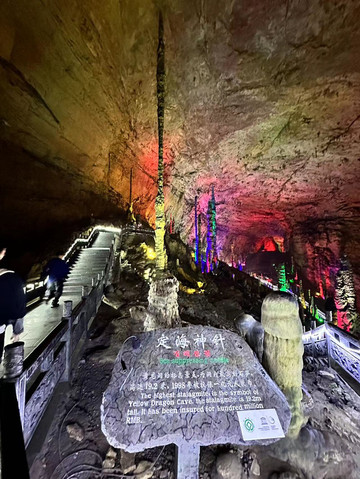 下船后就是重头戏,需要上上下下一个小时左右的台阶去游览各个形态的钟乳石,其中可以看到定海神针,洞内还是很壮观的,虽然很耗体力,但是对于北方孩子不经常看溶洞来说还是很值得的,