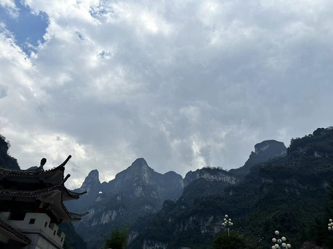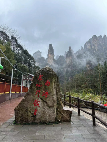 差不多中午在山下看山顶感觉还是大雾于是就坐环保车把老爸老妈先送出景区回客栈休息了,我继续前往天子山索道准备提前探探路保证明天以最快的速度游览山上景点同时父母可以少走不必要的路。