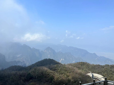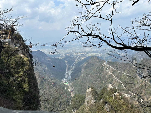 而后乘坐山顶小缆车上云梦仙顶在最高点看天门山全景。