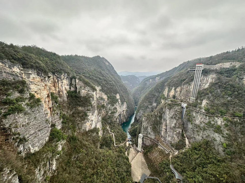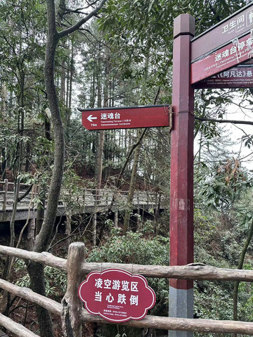 然后乘坐电梯下至早上大索道下来后的东西线汇合点继续游览东线的珙桐园和情人桥,