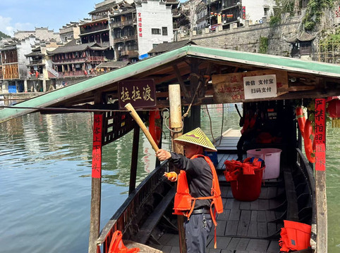 逛完洪安古镇之后回到渡口,乘坐2元一位的拉拉渡回到湖南茶峒,