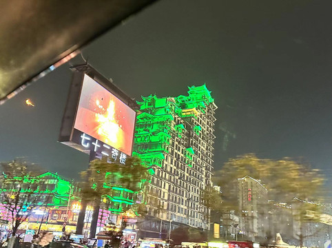 拍完照片六点半和老妈到旁边南华大桥拍一组此行最重要的视频,那就是仙剑“茂茂,我们到长安啦”,古城开灯的瞬间还是很震撼的。
