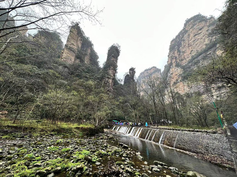 九点多入园,排队坐去百龙天梯的环保车那里超级多的人,我们这边排队坐去十里画廊的队伍反倒没什么人,也许自由行的好处就是可以随机应变嘿嘿,等了一小会儿车就来了,乘车大概二十分钟到达十里画廊入口,