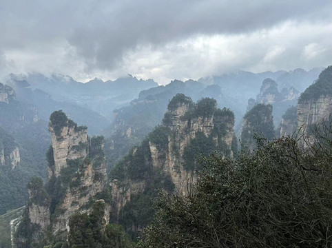 出了百龙天梯走出来第一个观景台拍拍照之后乘坐环保车五分钟到达袁家界迷魂台停车场,走几步到达迷魂台观景台,这一次我终于拍到了不在迷雾中的迷魂台,迷魂台迷魂台,这一幅美景真的越看越能陷进去,可能就是因为如此才叫迷魂台吧~