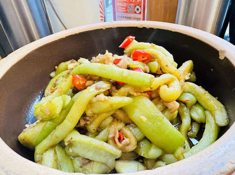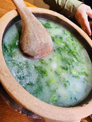 接上老妈到七个钵子晚餐,乾州鸭钵、肉沫茄子钵、米汤糊青菜钵。