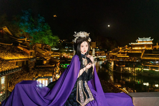 吃过晚餐后爸妈就在我们客栈的小露台欣赏凤凰的夜景,我继续到芈墨家做今晚的妆造,
