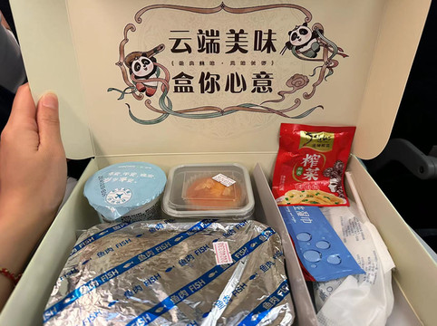 到机场补托运一个行李包之后,六点半航班准时起飞,八点半抵达天津滨海机场,晚饭国航飞机餐很丰盛哦,鱼肉饭加小甜点。