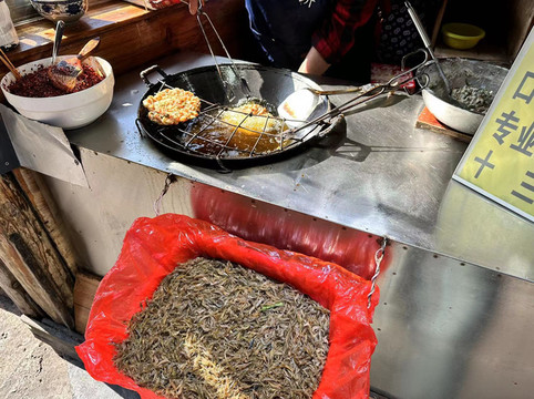 下船之后从万寿宫走回虹桥,买到了网红满食虾饼,10元一个现炸的小活虾哦,味道还是很赞的,