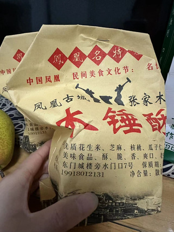其他都是咸辣口味,味道还不错,早午餐齐活,回去接上老爸老妈穿过虹桥到虹桥中路那边准备转一圈拍拍照,路过虹桥的杂粮铺子老妈又买了很好吃的玉米饼,老板已经认识我们了,所以多送了一个给我们嘿嘿,转一圈拍拍炸照品尝了一下凤凰特产木锤酥,还不错,买了一百元的七袋跟老板商量所以多送了一袋一共八袋,每袋里面两小包,心满意足嘿嘿。