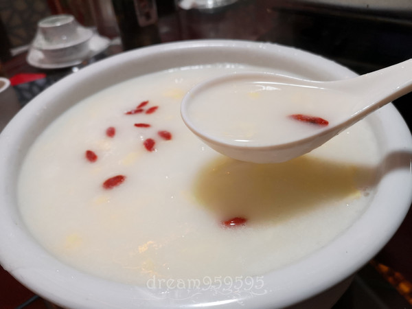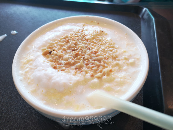 牛奶鸡蛋醪糟,有一些坚果颗粒,早上吃很舒服。