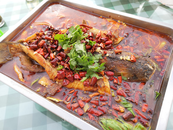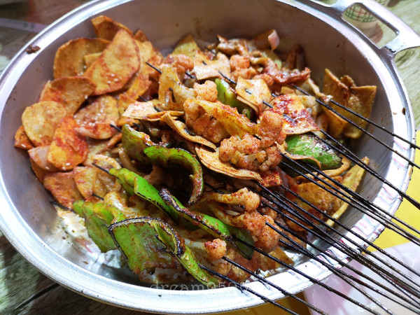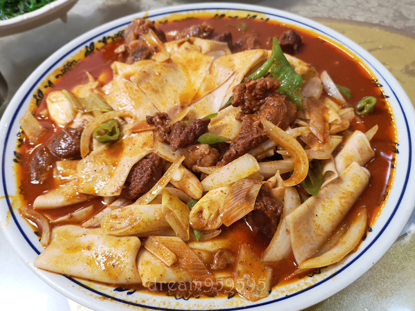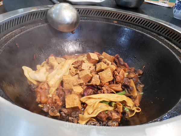 这大盘鸡可真让人震惊,五个人点中份就已经吃不完了,鸡很入味,调味很不错。里面的白皮面特别赞,劲道,之后就再没吃到那么好的,土豆也好吃。