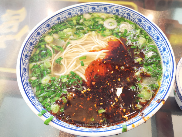 牛肉拉面,没有牛肉,必须加一份牛肉。加了点辣子,汤还是蛮鲜的,面吃起来很带劲。