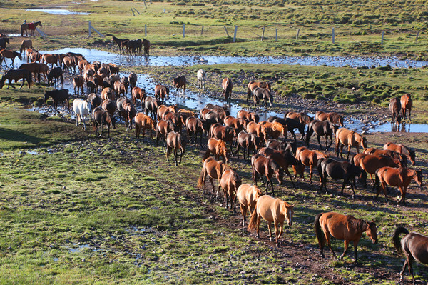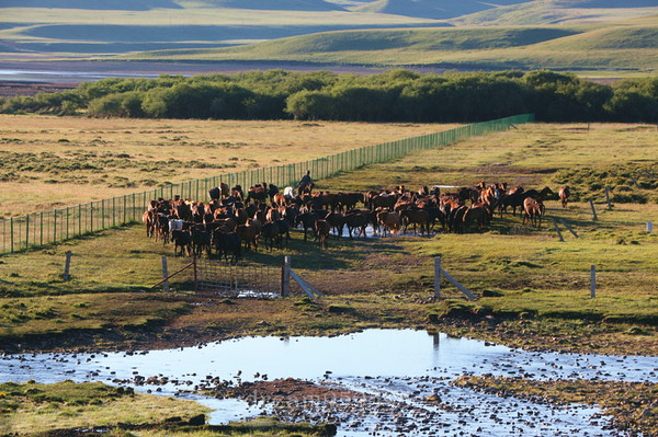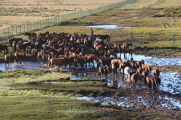 清晨的军马场宁静漂亮,马场里面也是有住宿的,出门就可以看马喝水了。