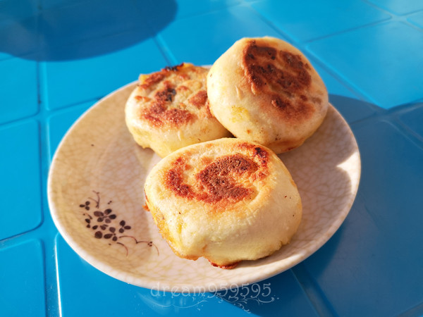 烫面油饼,蘸着白糖吃,微微一碰就像酥皮一样,很香,好吃的。但实在太多了,够十个人吃。