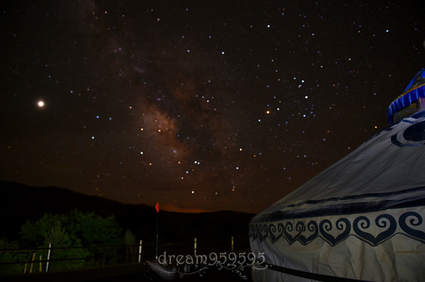 露台上有三个蒙古包,看星星很不错。