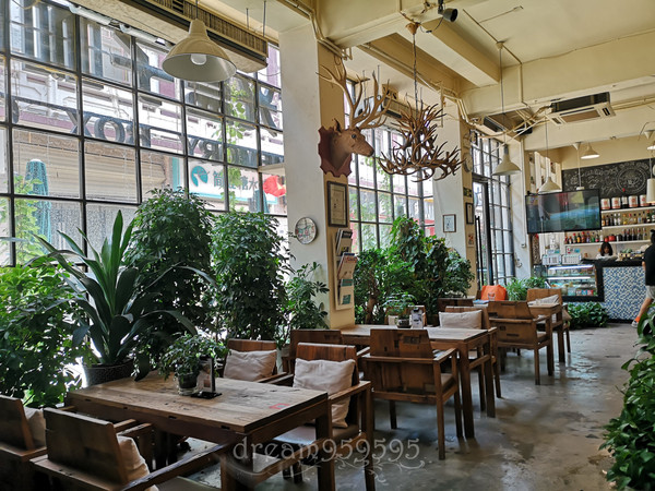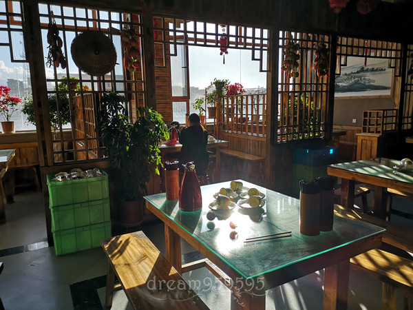 餐厅像个农家乐的露台,木制复古,阳光充沛。