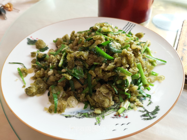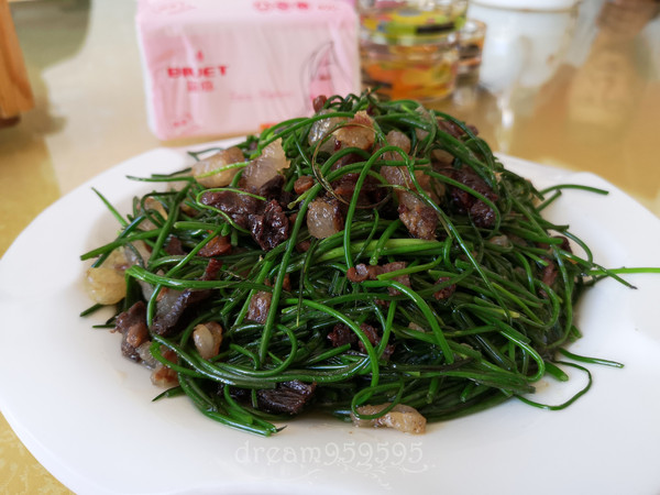 沙葱炒风干羊肉,羊肉干味挺浓的,但羊膻味比较重。