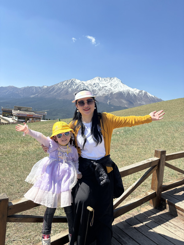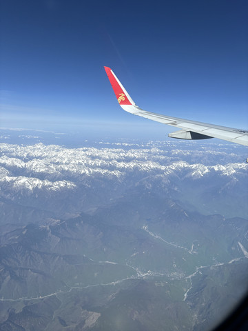 由于起来得太早,上了飞机就睡觉了,睡前瞄了一眼,全家都在睡觉,3小时40分钟的飞机,相信很快就过了。起飞1小时后,空姐发了一次餐点,伢醒了吃了,我们都没醒,留着了。飞机到达前半小时,通过小窗户能看到外面的一片一片的雪山,孩子平时没什么机会看到这样的景色,逗醒她让她看看,但是她似乎对空姐的工作更加感兴趣。