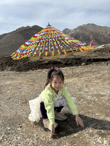 在网上浏览了解了一下,说是当年文成公主出嫁,从这条路通往西藏,经过这的时候,拿着日月宝镜照了照自己,整整容妆,镜子里显现出了长安城,大概是她思家心切,念念不舍吧,女孩子往往都比较恋家,感叹之余眼泪哗哗的,出神发愣时失手打碎了镜子(铜镜子也挺脆的?),镜子摔成了两半,一半埋在日山,一半埋在月山。挺感人的故事,其实松赞干布也挺够意思的,活生生的给他整了那么大个楼(是大昭寺,不是布达拉宫)。古代帝王家的子女往往无法主宰自己的命运,文成公主的后续生活算是特别美好了,还是值得庆贺的。