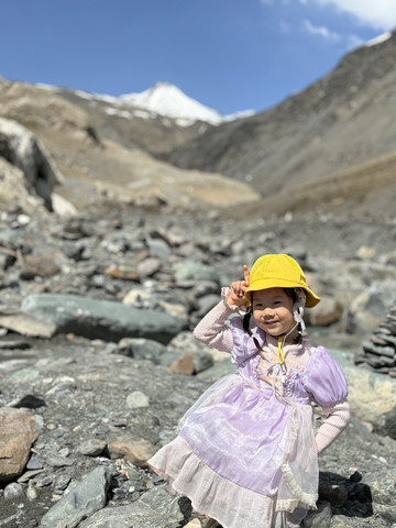 山头我们是没什么体力上去了,但是我伢对自然风光非常喜欢,他自己爬上右边的山包包向我们挥手致意,他高兴,我们也就很开心了。我小孩明显的高反了,我和妻子就一个劲的哄着喂水,她也挺乖又或者没什么力气闹了,焉焉的,于是我们决定往前走。