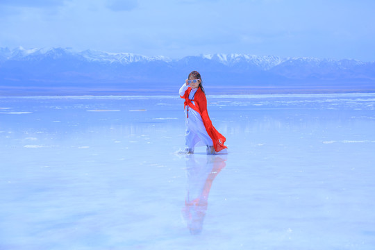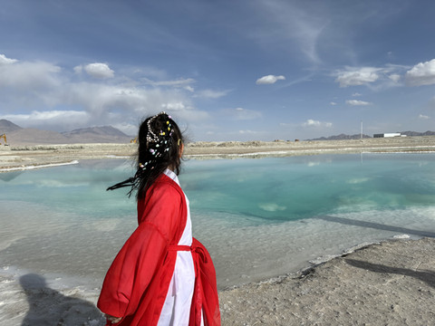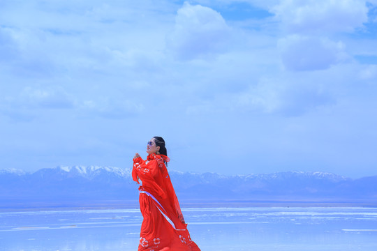 (青海湖边的妻子)