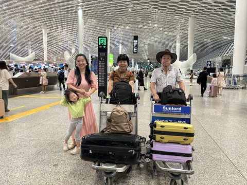 吃过晚饭,19:30全家一起拿着大箱子,小包包,扶老携幼踏上去往机场东方向的地铁。到达固戍站就下来了,步行1.5KM左右,22:00达到预订的酒店(悦豪公寓)。这个酒店性价比很高,睡一晚是没有任何问题的。我告知前台,我们是明早7:20的飞机,前台很热情说明早5点准时在酒店门口搭送机车,酒店会提前15分钟(4:45)叫醒。这很方便。