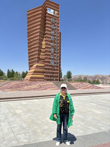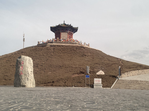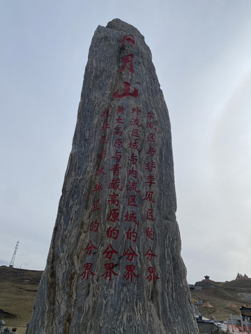 日月山出去的路是继续往前,不必回头,下山后经过了一个博物馆,我伢娘去转了一圈,回来说一个小院子没什么看头,又往前开了百多米,就是一个巨高的界碑,这个界碑叫中华地理界碑石,感觉得有个4、5层楼那么高,现代很多都市大广场都会弄块大石头镇一镇,放别的地方,这块界碑看来也不觉得怎么特别,但是在这高原地带,环顾四下,远远的地方黄黄的山群,转而一座这么高的石碑,颇有几分意思,关键这个石碑和身后的文成公主雕像以及日月山构成了一条中轴线,拍照出来也十分有意思。碑上刻着“日月山——季风区与非季风区的分界,内流区域与外流区域的分界,黄土高原与青藏高原的分界,农业区与牧业区的分界”,得亏石头大不然刻不下。
