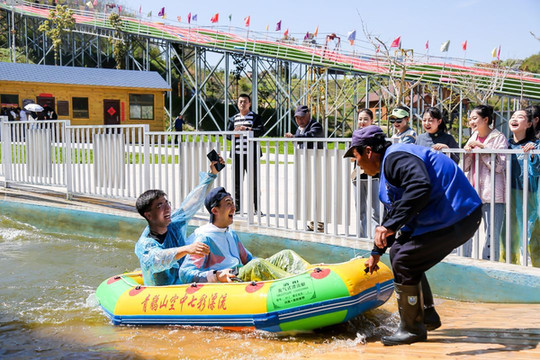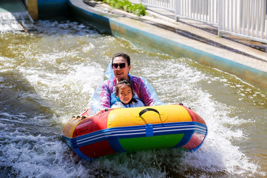 坡道由缓至急,百米高的落差顺流而下。与过山车相比,少了些许惊险刺激,多了几分山水趣意;和山涧漂流相比,少了几分平淡恬适,多了几分动魄惊心。清凉的水珠拍打在脸上,挥去了阳光的炙热,抛却了心头的烦忧。