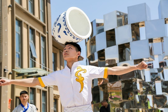 十年磨一剑,精彩的顶缸表演,气定神闲,婉若游龙。