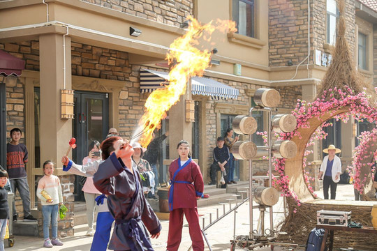 鞭子灭烟、开酒、撕报纸;头上楼梯、倒立跳绳;吞火、喷火,更有飞斧百发百中……五一期间,曾多次登上央视舞台的演绎班子也来到了青鹃山景区,用精彩绝伦的专业表演,为游人的五一青鹃山之行增添了更多亮色。