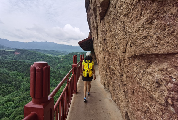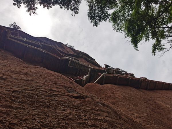 一座孤山,各个石窟间用悬空栈道连接,抬眼远望,惊叹不已。