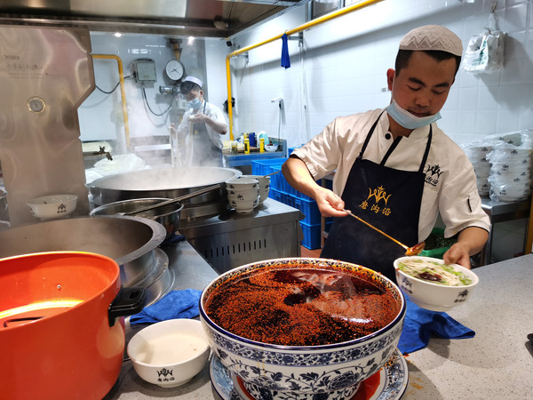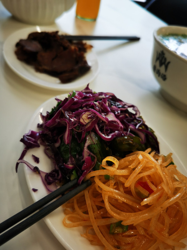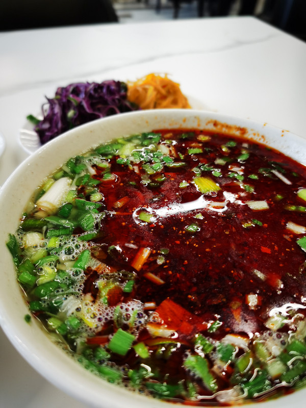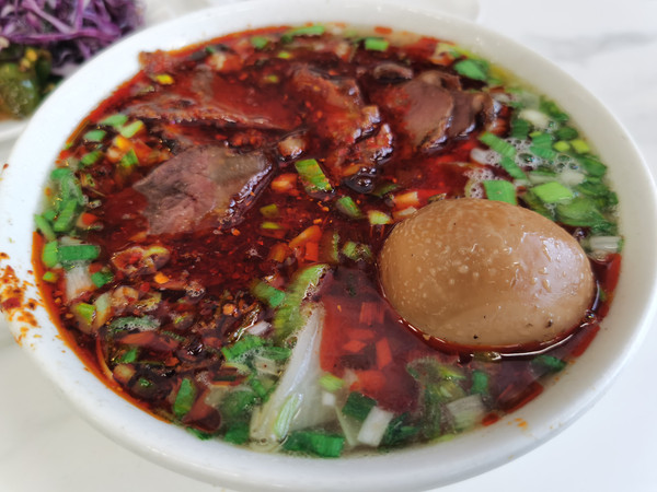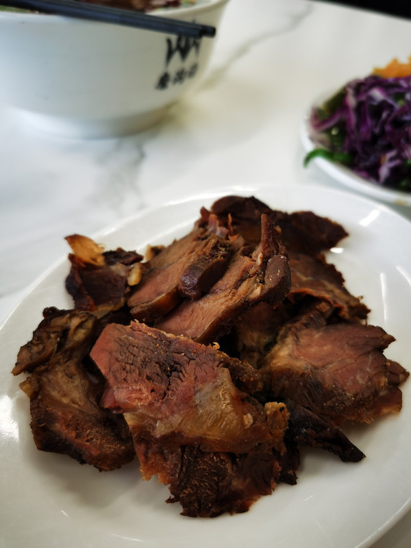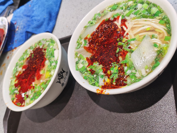 晨跑过后就是第一次兰州之行后无比想念的——兰州牛肉面。这一次是滴滴司机推荐的当地人去的磨沟沿老字号牛肉面,离宾馆步行5分钟的距离。