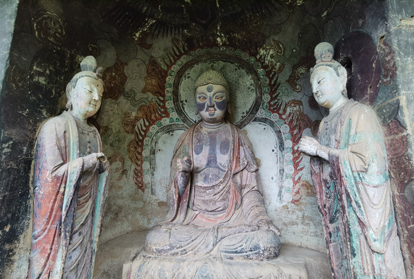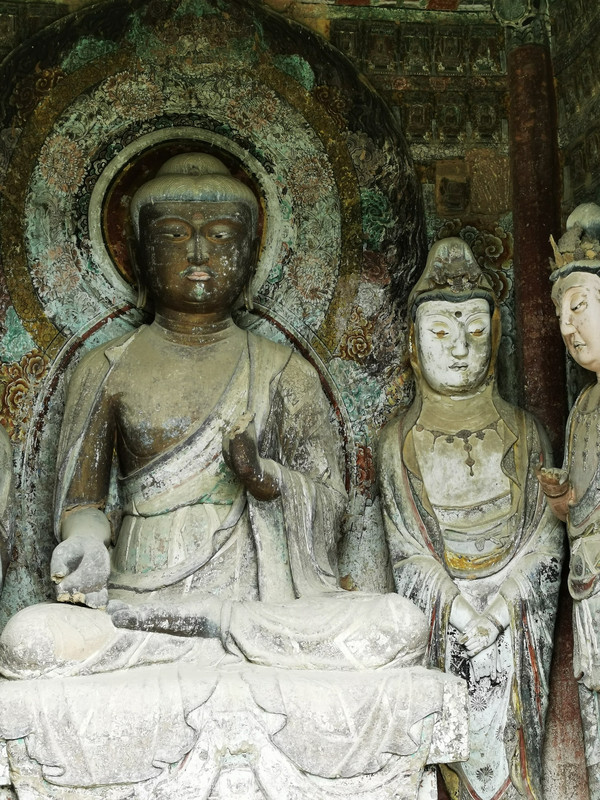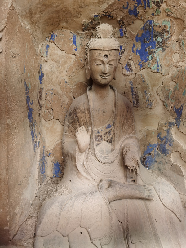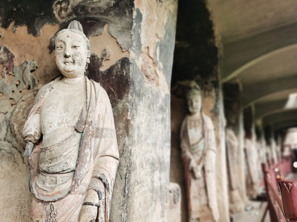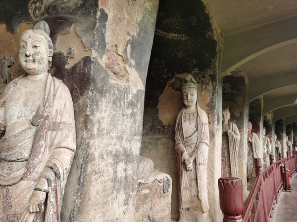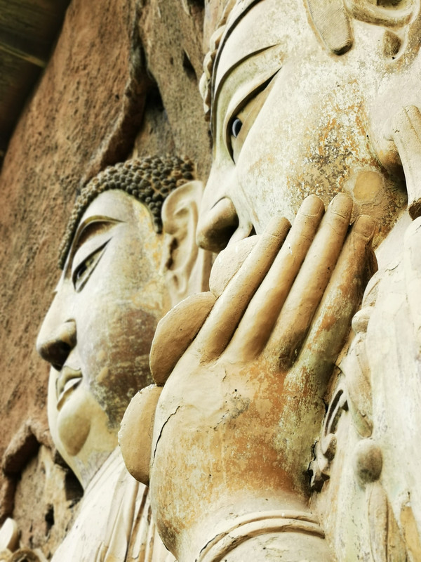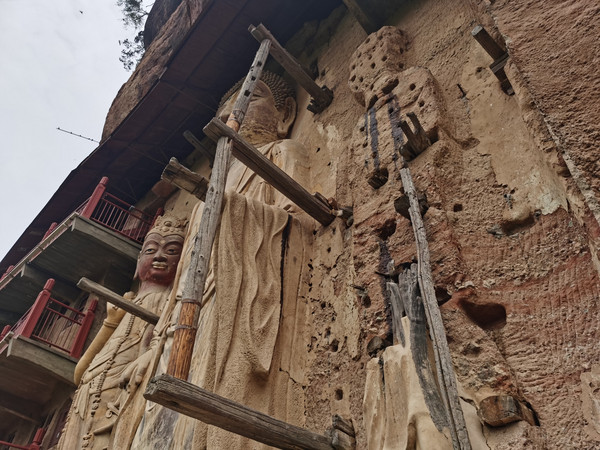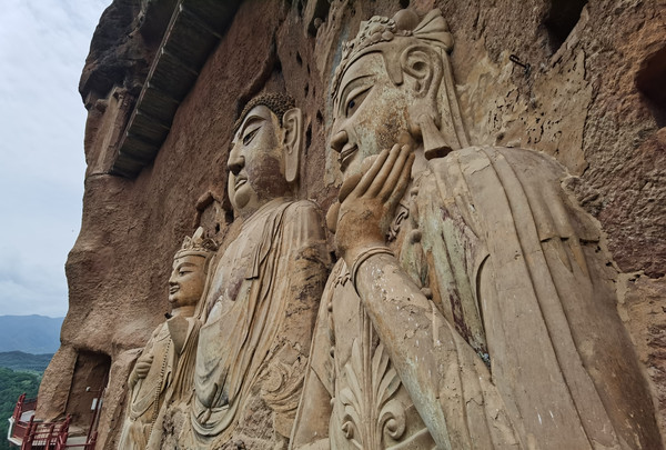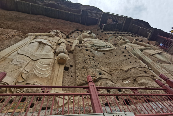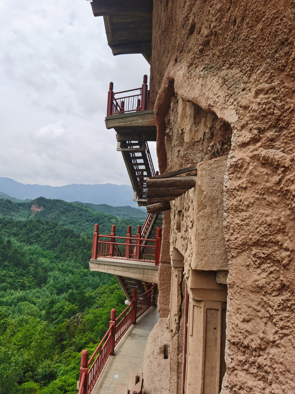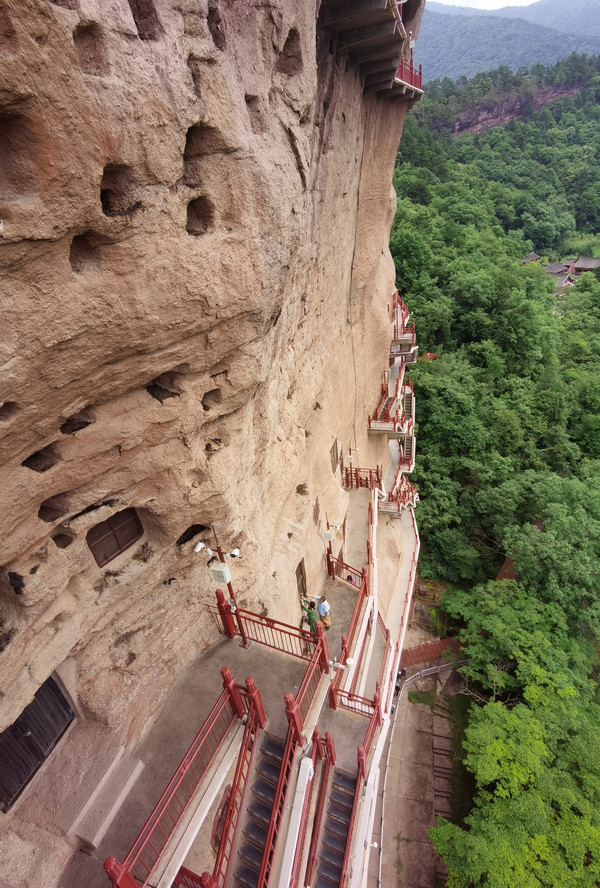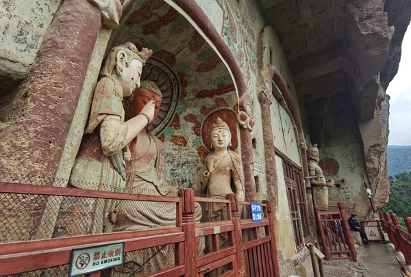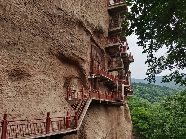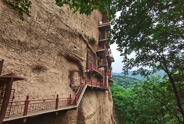 虽然麦积山在四大石窟中存在感最弱(可能因为交通不太便利),但从我一个外行的角度来看,麦积山石窟有着自己独特的观赏点,还是非常值得前去一睹风采的:一是石窟所在的麦积山是一座岩壁陡峭、绿植环抱的孤山,景色清秀,登山崖上的悬空栈道,既可以观赏佛教艺术,又能欣赏周围的景色,还能体会脚下腾空的惊险刺激。二是佛像面容喜感十足。麦积山石窟的石像面容大都亲切慈祥,有的更是兴高采烈的表情,与别处的威严有所不同。